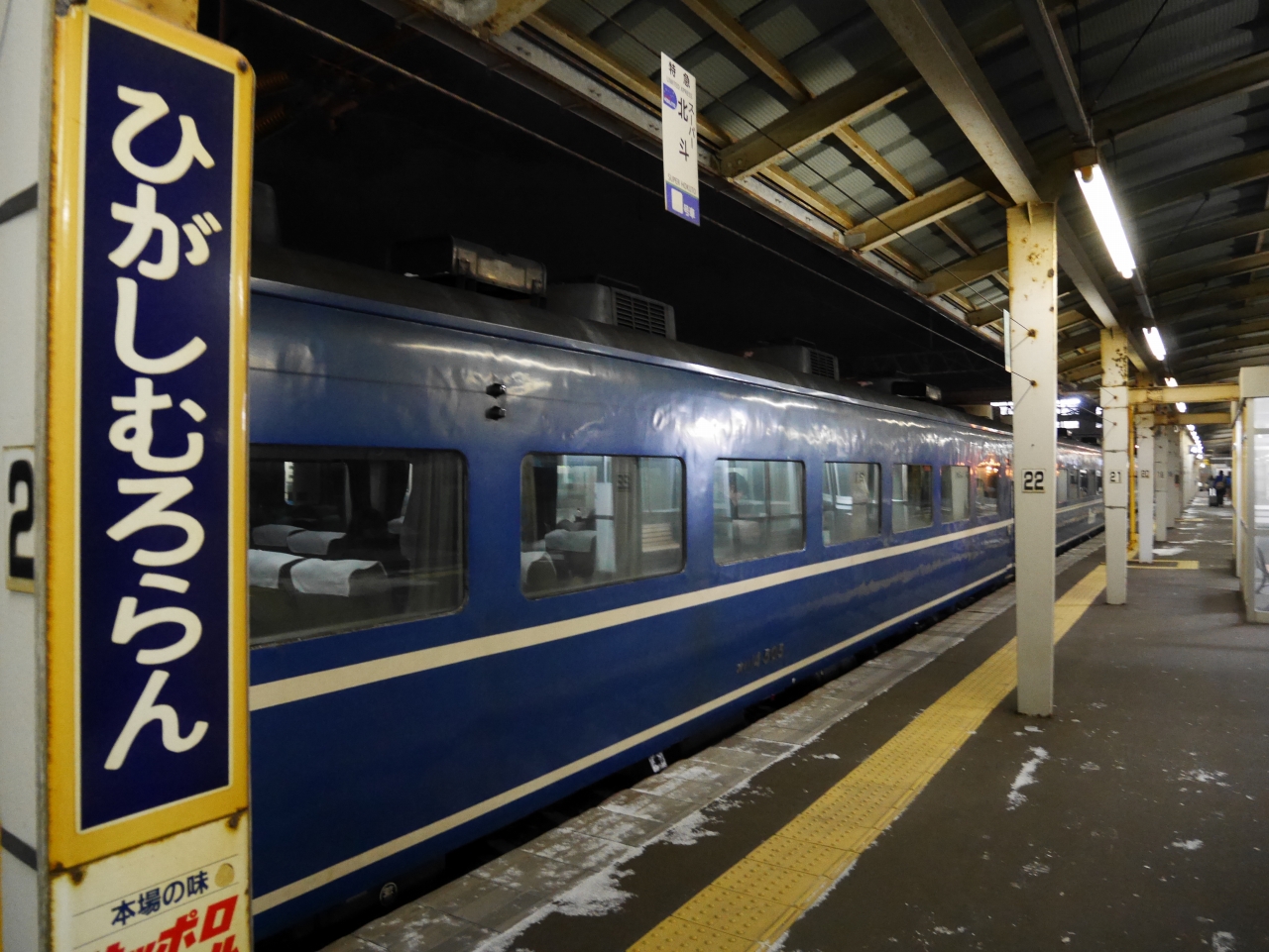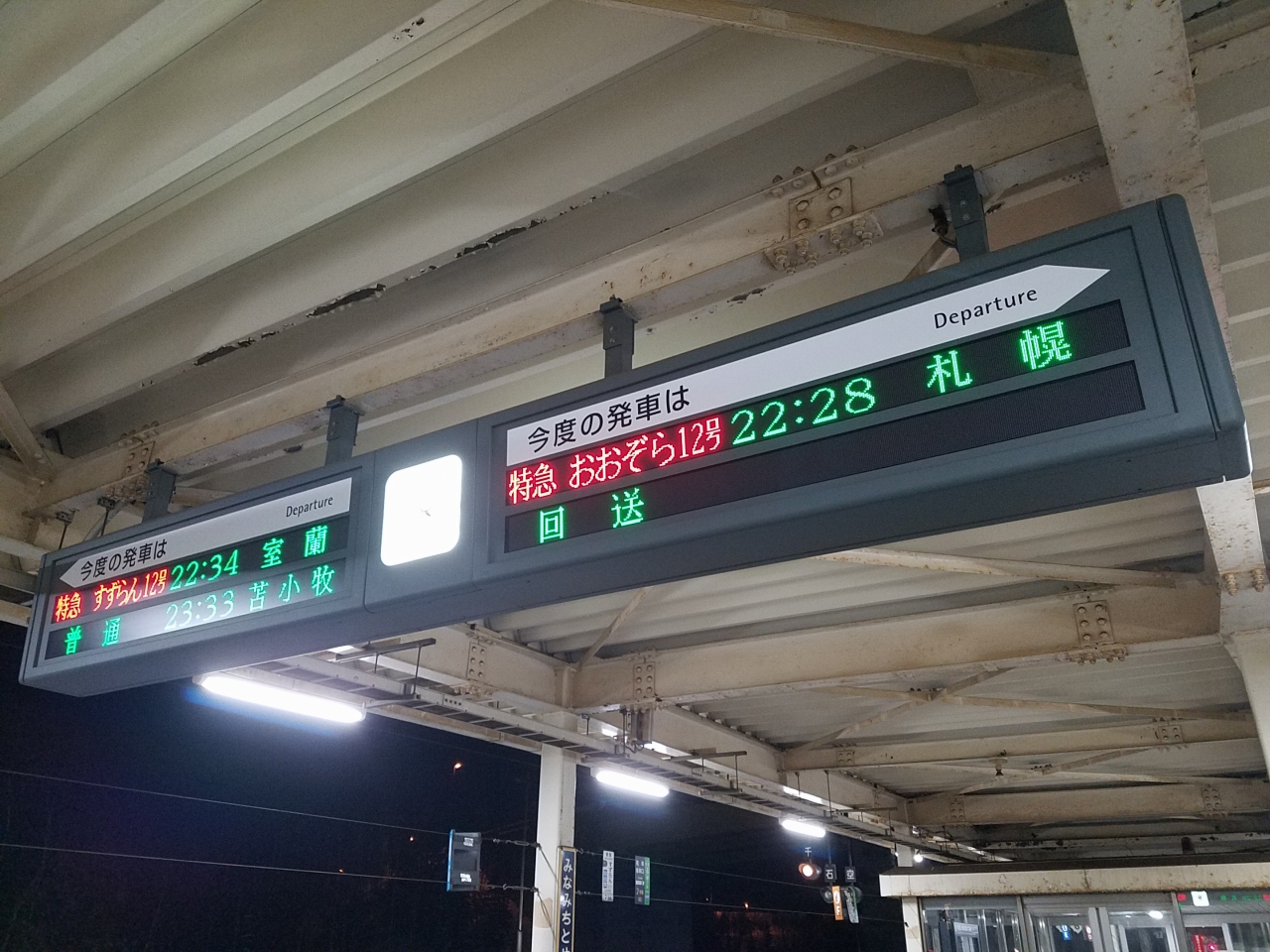 札幌駅を22:00に発車し、東室蘭に23:31着、終点の室蘭に23:44着と遅い時間に設定されています。