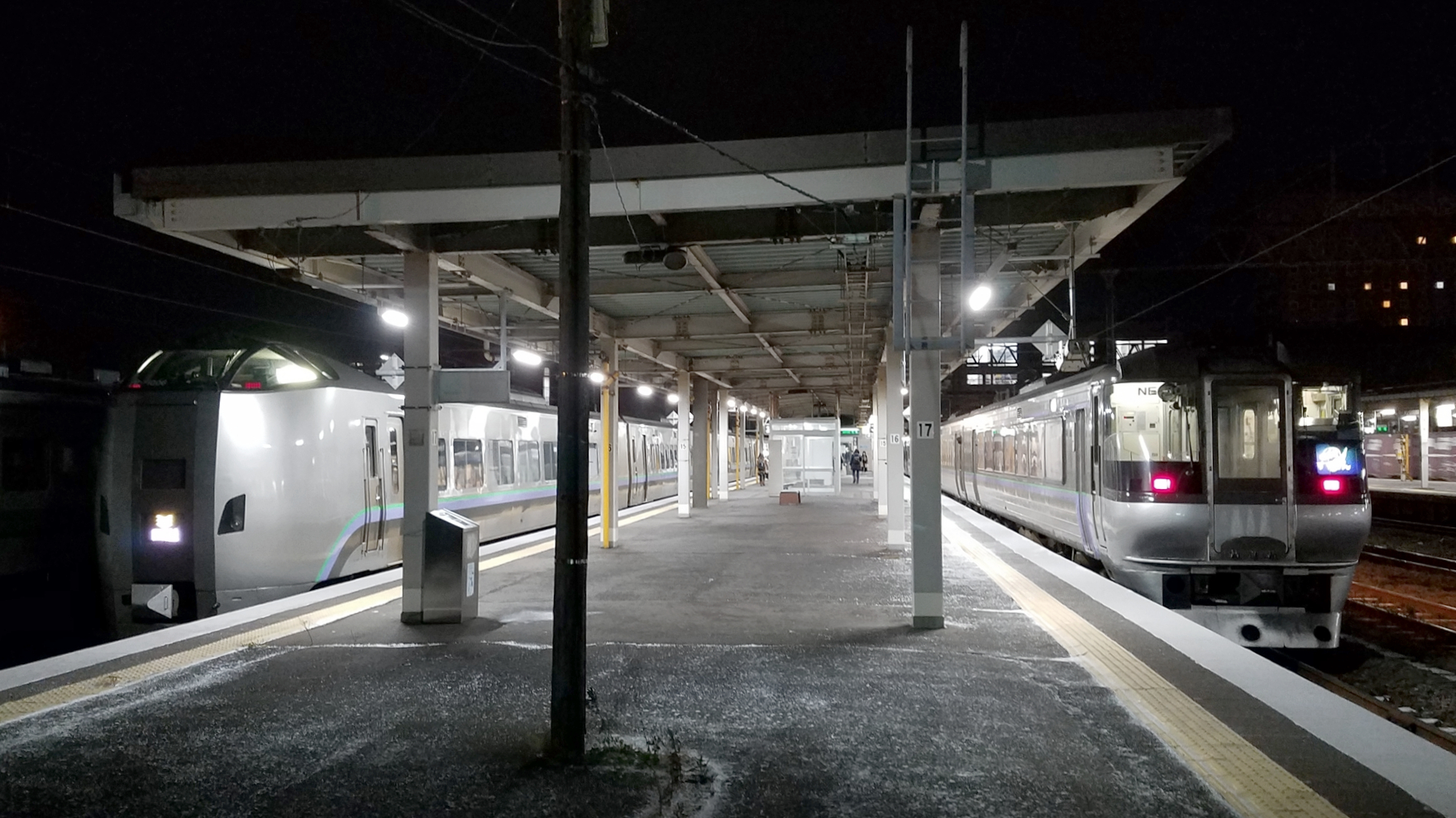 おおぞら12号が遅れていると両車が並ぶことも(2021年1月 南千歳駅)